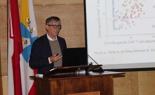 Uno de los invitados principales del encuentro fue el inmunólogo Dr. Alessandro Sette, investigador del La Jolla Institute for Immunology en Estados Unidos, reconocido internacionalmente por sus contribuciones al estudio de la respuesta inmune frente a patógenos emergentes y al desarrollo de herramientas para analizar cómo el sistema inmunológico reconoce virus y otros agentes infecciosos, quien dictó la charla titulada: ‘‘Adaptive T cell responses in natural infection and neurodegenerative diseases’’.