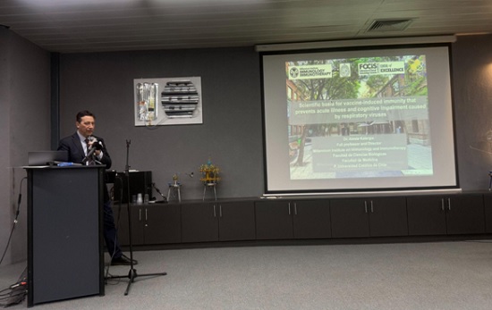 Durante la jornada, los académicos chilenos presentaron sus trabajos sobre modernas aproximaciones científicas para el desarrollo de vacunas y diagnóstico, incluyendo procedimientos de control de calidad y ensayos clínicos, ofreciendo una visión integral del trabajo que se realiza en Chile, destacando tanto la investigación aplicada como la transferencia tecnológica para el desarrollo de productos inmunológicos.